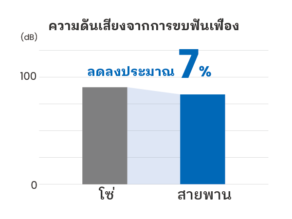 เมื่อเปรียบเทียบกับระบบขับเคลื่อนด้วยโซ่ สายพานชนิดนี้สามารถ ลดระดับความดันเสียง (Sound Pressure Level) ได้สูงสุดประมาณ 7%