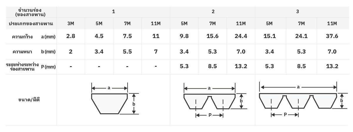ผลิตจากโพลียูรีเทน โดยออกแบบรูปทรงเป็นฟันซี่เพื่อเพิ่มความยืดหยุ่นของสายพาน และยังช่วยในการระบายความร้อนได้อย่างมีประสิทธิภาพ(2) เส้นเชือกแรงดึง