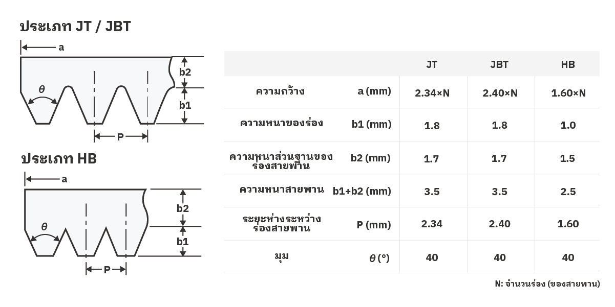 ออกแบบเป็นรูปทรงฟัน เพื่อช่วยเพิ่มความยืดหยุ่นของสายพาน และยังมีส่วนช่วยในการระบายความร้อนระหว่างการทำงาน(2) เส้นเชือกแรงดึง : ไนลอน