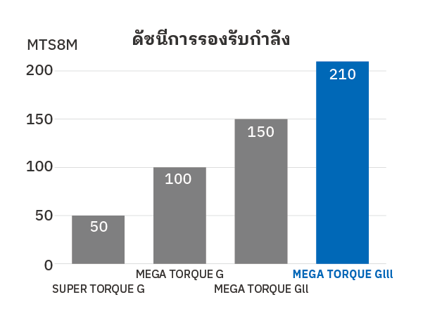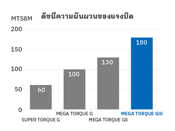 เมกะ ทอร์ค จี (MEGA TORQUE G) เมกะ ทอร์ค จี ทู(MEGA TORQUE GII) เมกะ ทอร์ค จี ทู พี(MEGA TORQUE GIIP) เมกะ ทอร์ค จี ทรี (MEGA TORQUE GIII) เมกะ ทอร์ค อีเอ็กซ์(MEGA TORQUE EX) ประเภทของสายพาน MTS3M